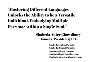 - **Language Proficiency:** Shaheda is a certified language teacher and polyglot, proficient in over ten languages and their various dialects.